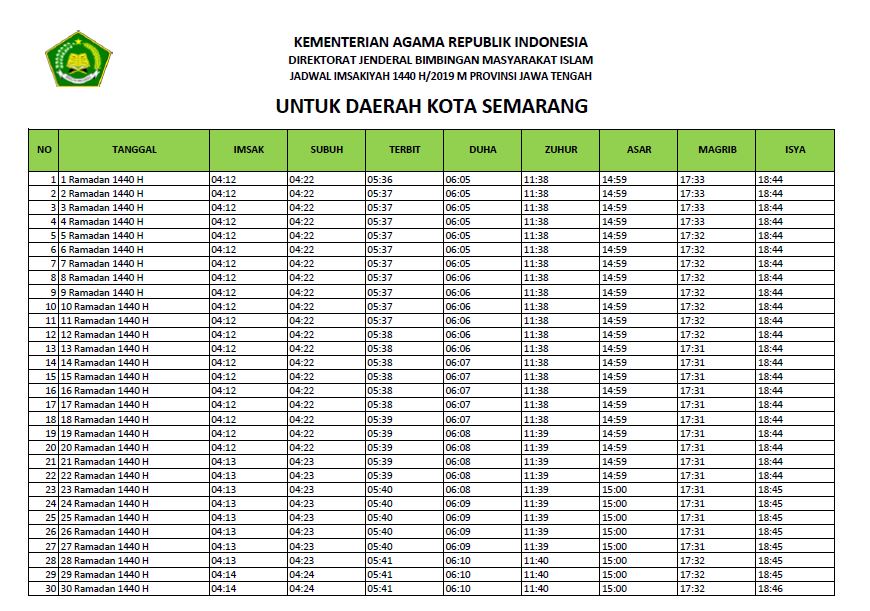 Dоwnlоаd Jadwal Imѕаkіуаh Ramadhan 2019 (1440 H) Kota Semarang